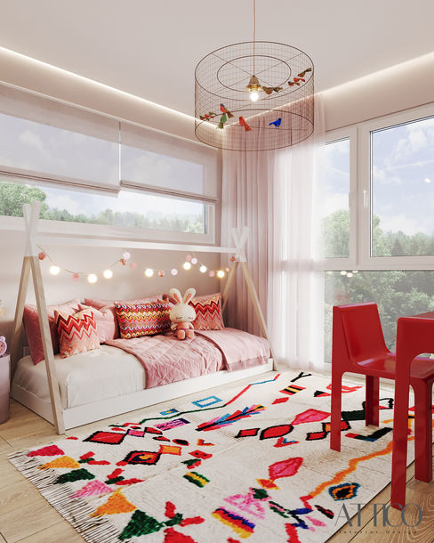 Couleur ! Pour notre dernier projet de design d'intérieur, nous avons imaginé la future chambre d'une charmante petite fille de 3 ans qui adore les animaux, le rouge et le violet ! Nous avons conçu cet espace cosy de 10 m² pour qu'il soit aussi fonctionnel que possible, permettant à la fois de jouer et de rêvasser. Nous avons sélectionné des meubles emblématiques et différentes nuances de violet, rose et rouge pour créer une chambre pleine de vie et de personnalité.